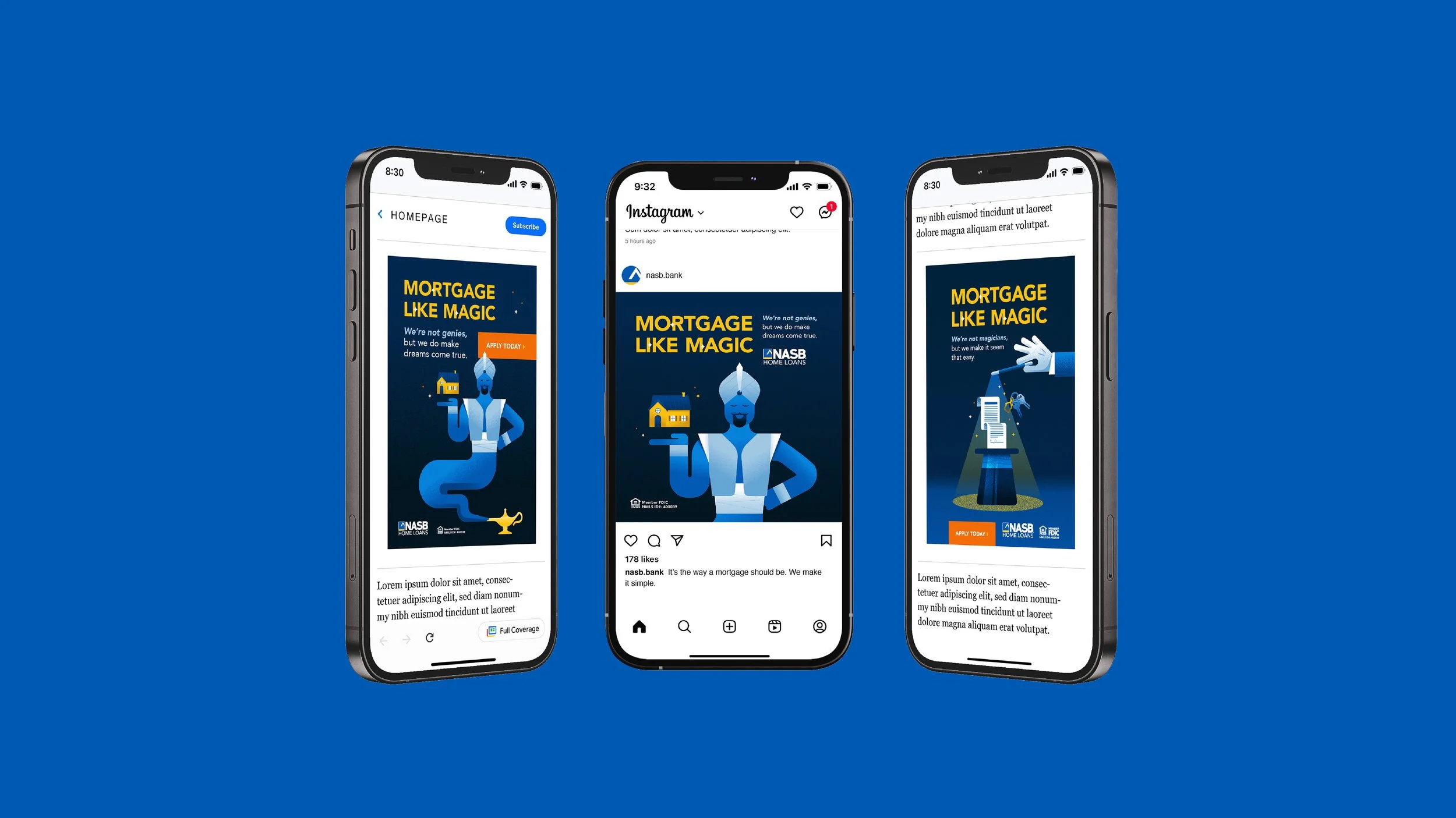 A digital ad campaign for North American Savings Bank, to promote mortgage loans. "Mortgage like Magic" showcases how effortlessly NASB turns the home-buying process into a seamless, almost magical experience. The project involved the creation of custom illustrations and digital ads.